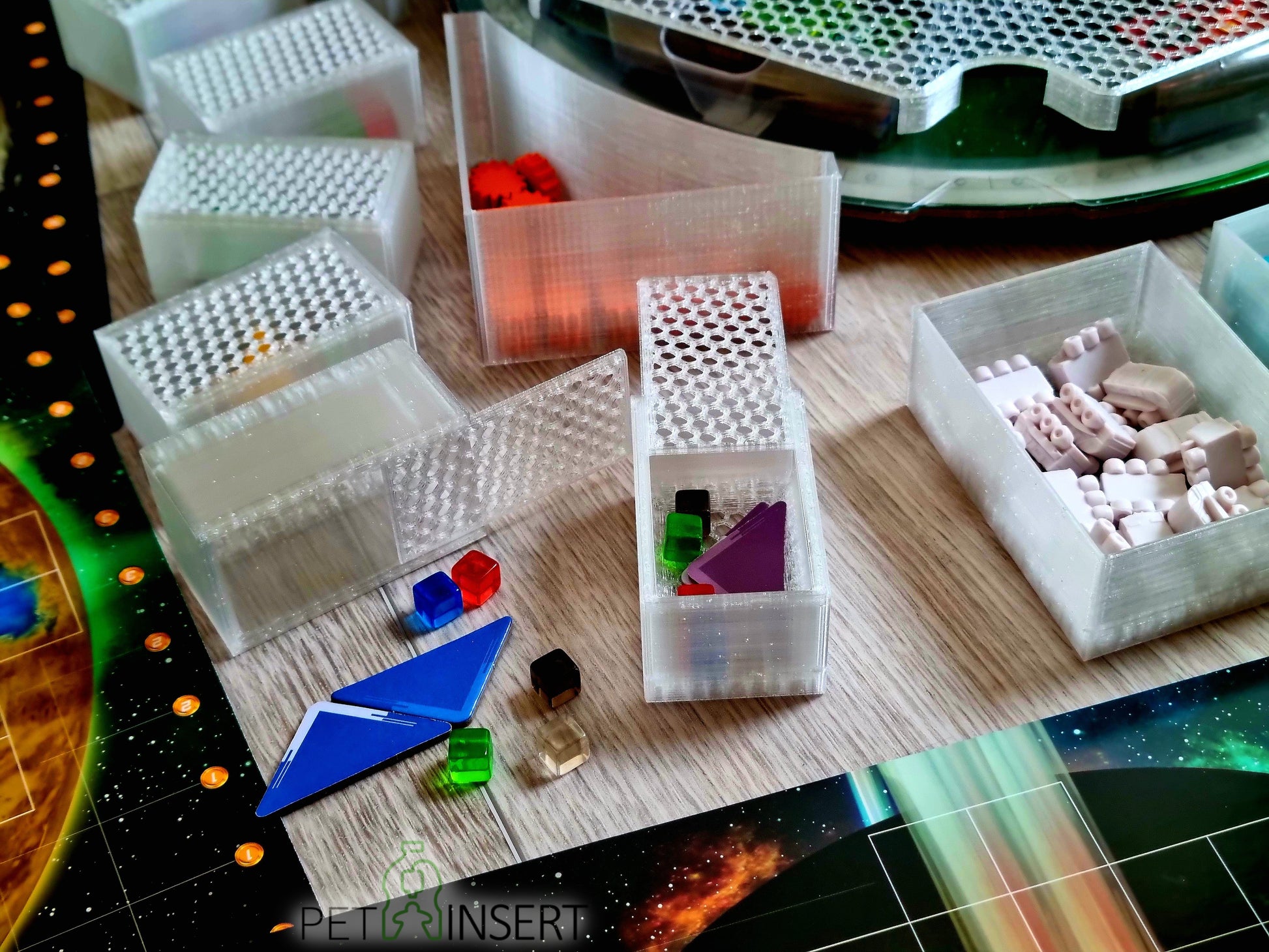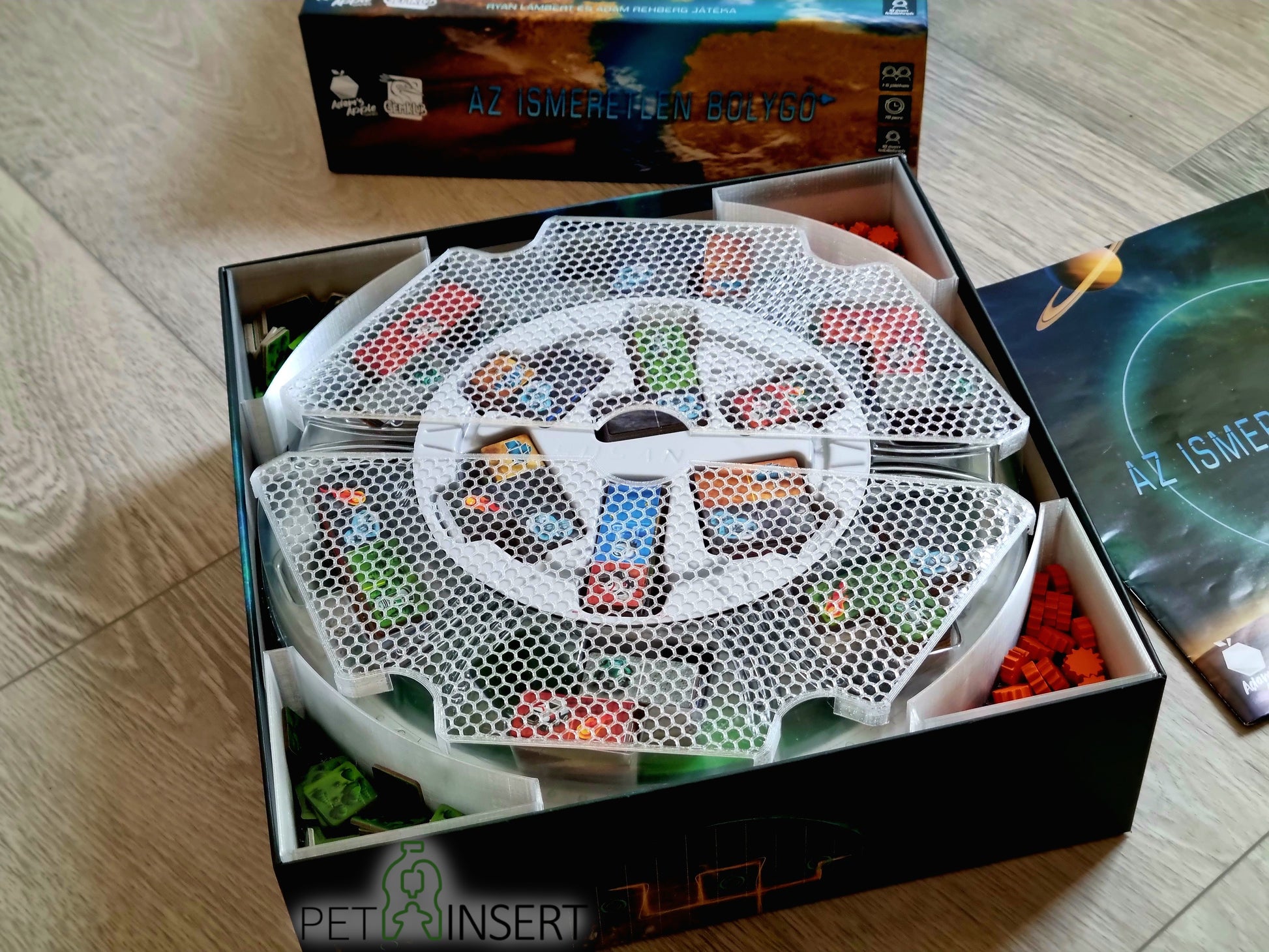 - S.U.S.A.N. kapott egy két részből álló fedőt, mely a doboz tetejéhez nyomódik, így állítva is tárolható a játék a lapkák szétesése nélkül,