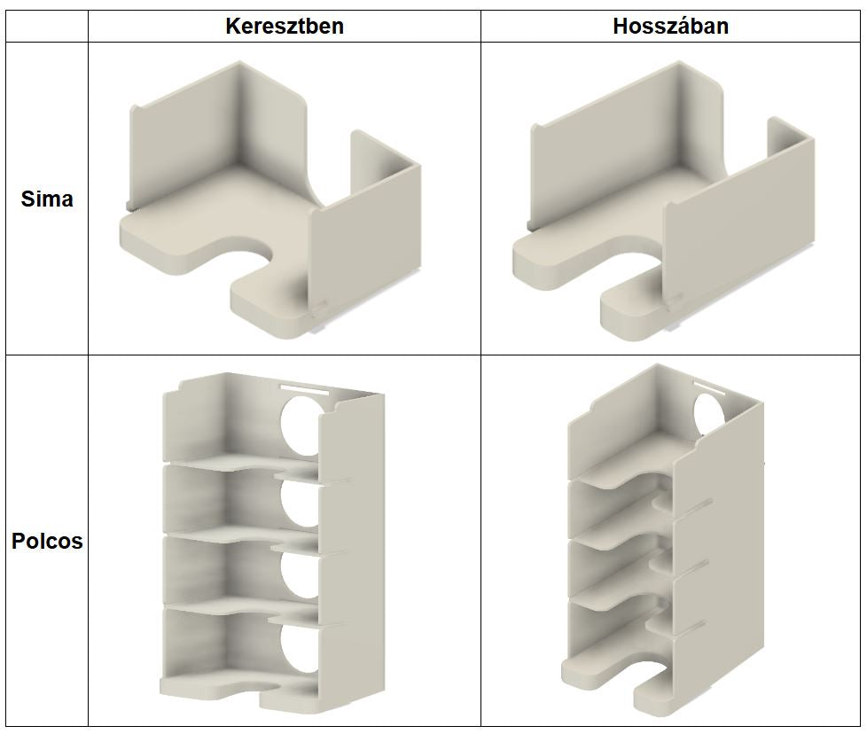 - a polcos verzióhoz 3db polcot adunk, melyek kivehetők, és tetszés szerint berakhatók.